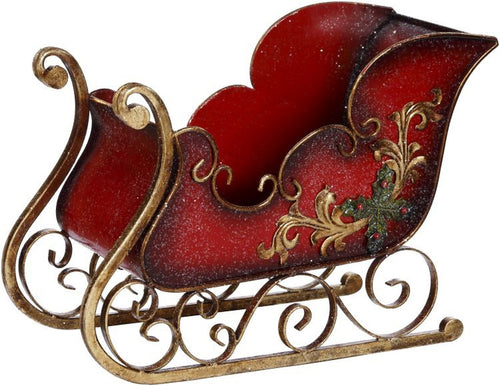 25" Resin Santa in Gold Sleigh w/3 Deer